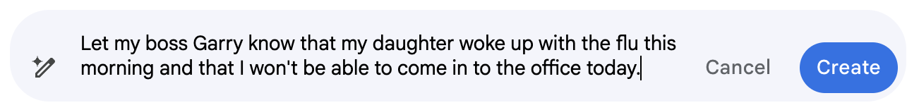 Here I've added a prompt to the interface requesting a draft for an email to my boss. Let's see what Gemini returns: